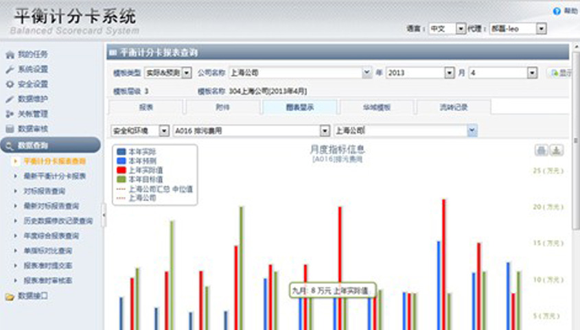 系統實(shí)現了基于平衡積分卡理念的公司戰略層管理,將組織的戰略落實(shí)為可操作的衡量指標和目標值,并在系統中進(jìn)行預測、填報、審批和數據分析,用來(lái)與預期管理目標進(jìn)行比對,以便于獲取真實(shí)的目標數據值來(lái)調節公司的戰略。